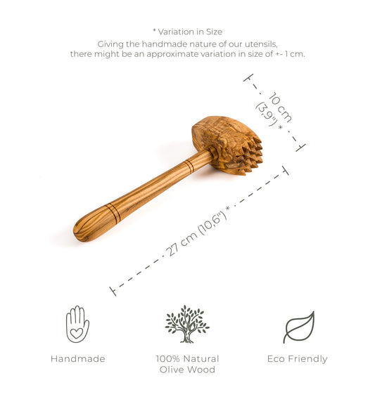 Handmade Olive Wood Meat Tenderizer – Double-Sided Wooden Meat Mallet