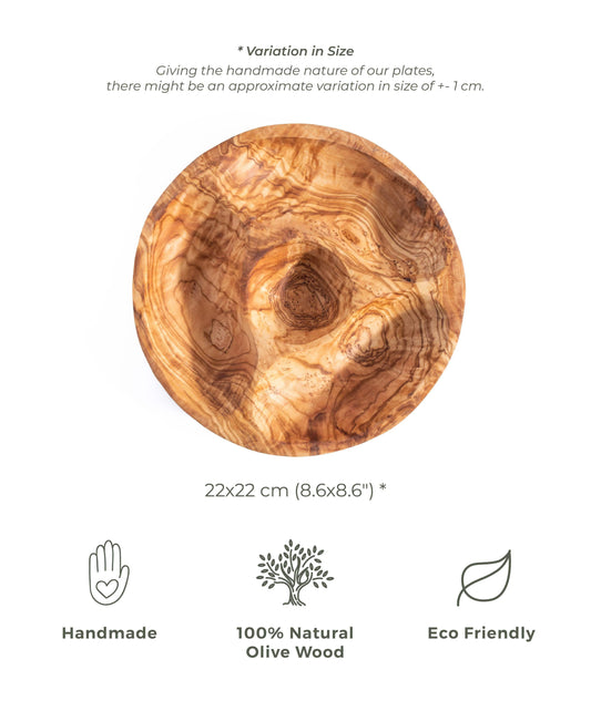 Handmade Olive Wood Snack Plate – 4-Compartment Round Appetizer Tray (8.6")